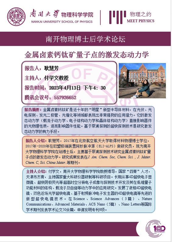 【“物理之约”博士后学术论坛(第 5 期)】金属卤素钙钛矿量子点的激发态动力学